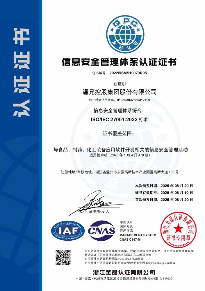 ²¢Õ¼Óйú¶ÈÌØÖÖÉ豸³ö²úÐí¿ÉÖ¤¡¾Ñ¹Á¦ÈÝÆ÷Ôì×÷-¹Ì¶¨Ê½Ñ¹Á¦ÈÝÆ÷ÖÓ×¢µÍѹÈÝÆ÷£¨D£©¡¿¡¢GC2ÀàѹÁ¦ÈÝÆ÷¹Ü·װÖÃÐí¿ÉÖ¤¡¢¹¹Öþ»úµç×°Öù¤³Ìרҵ³Ð°ü·¡¼¶×ÊÖÊ¡£Í¨¹ýISO/IEC 27001:2022ÐÅÏ¢°²È«ÖÎÀíϵͳ¡¢ISO/IEC 20000-1:2018ÐÅÏ¢¼¼Êõ·þÎñÖÎÀíϵͳ¡¢IS0 9001ÖÊÁ¿ÖÎÀíϵͳ¡¢ISO 45001Ö°Òµ½¡È«°²È«ÖÎÀíϵͳ¡¢ISO 14001»·¾³ÖÎÀíϵͳÈÏÖ¤¡£